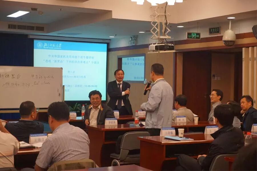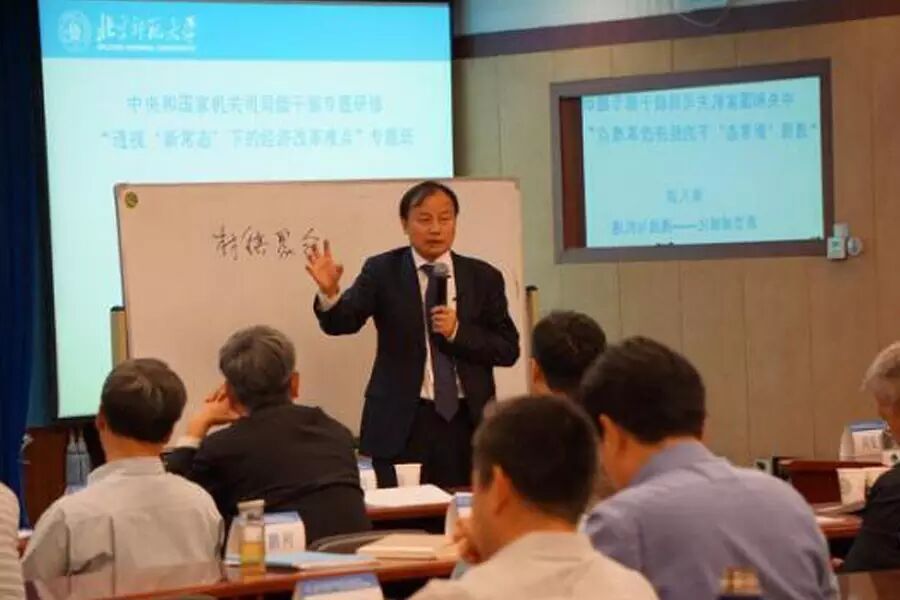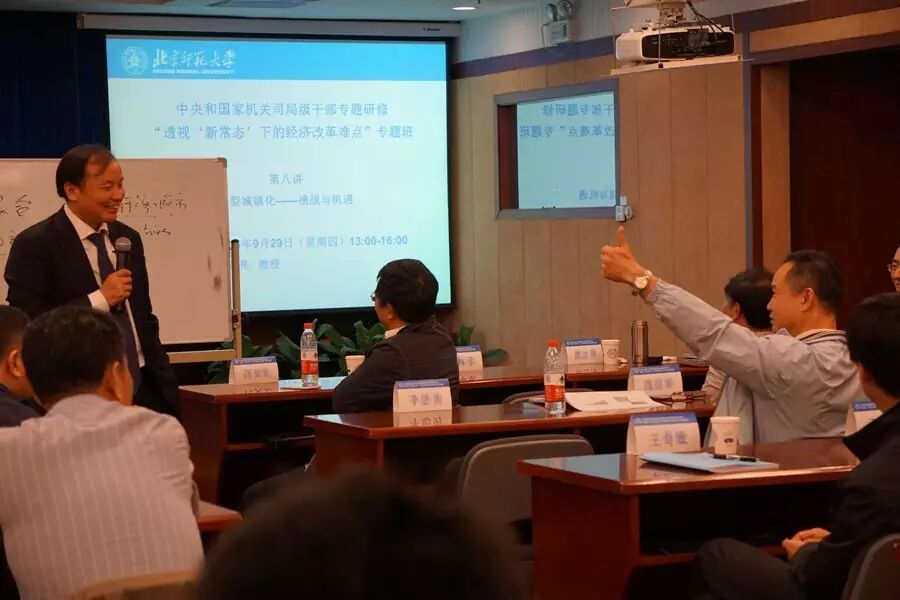 2016年9月29日,北京师范大学新兴市场研究院院长胡必亮教授应邀为中央和国家机关司局级干部专题研修北京师范大学“透视‘新常态’下的经济改革难点”专题研修班讲授“中国新型城镇化 – 挑战与机遇”专题。